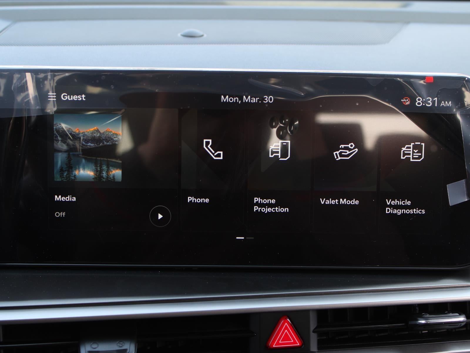 • Radio: AM/FM Standard Sound System -inc: 12.3" ccNC lite touchscreen, HD Radio, Bluetooth® w/audio remote control, wireless Android Auto and wireless Apple CarPlay, voice recognition, modem, Sirius XM, modem, Kia Connect, Over-The-Air Updates (OTA), 6 speakers and USB