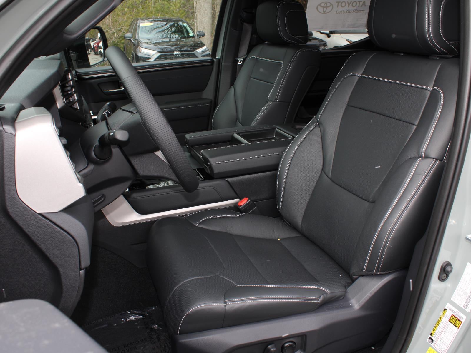- Leather-trimmed seats with contrast stitching; 8-way power-adjustable driver and front passenger seats with power-adjustable lumbar support