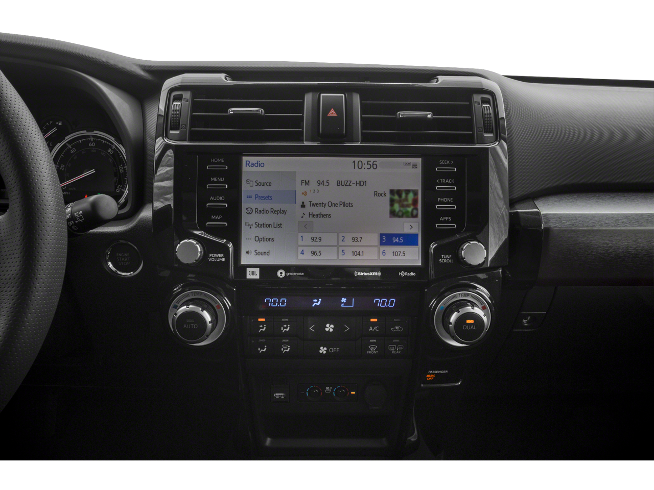 • Radio: Premium JBL Audio w/Navigation -inc: JBL w/Clari-Fi, 15 speakers including subwoofer and amplifier, 8.0" touchscreen display, AM/FM/HD Radio, Android Auto, Apple CarPlay and Amazon Alexa compatible, USB media port, 2 USB charge ports, Dynamic Navigation w/up to a 3-year trial, Dynamic POI Search, hands-free phone capability, dynamic voice recognition and music streaming via Bluetooth® wireless technology, SiriusXM w/3-month All Access trial, Connected Services - Safety Connect w/1-year trial, Service Connect w/10-year trial, Remote Connect w/1-year trial, Wi-Fi Connect w/up to 2 GB within 3-month trial, Destination Assist w/1-year trial See toyota.com/audio-multimedia for details.