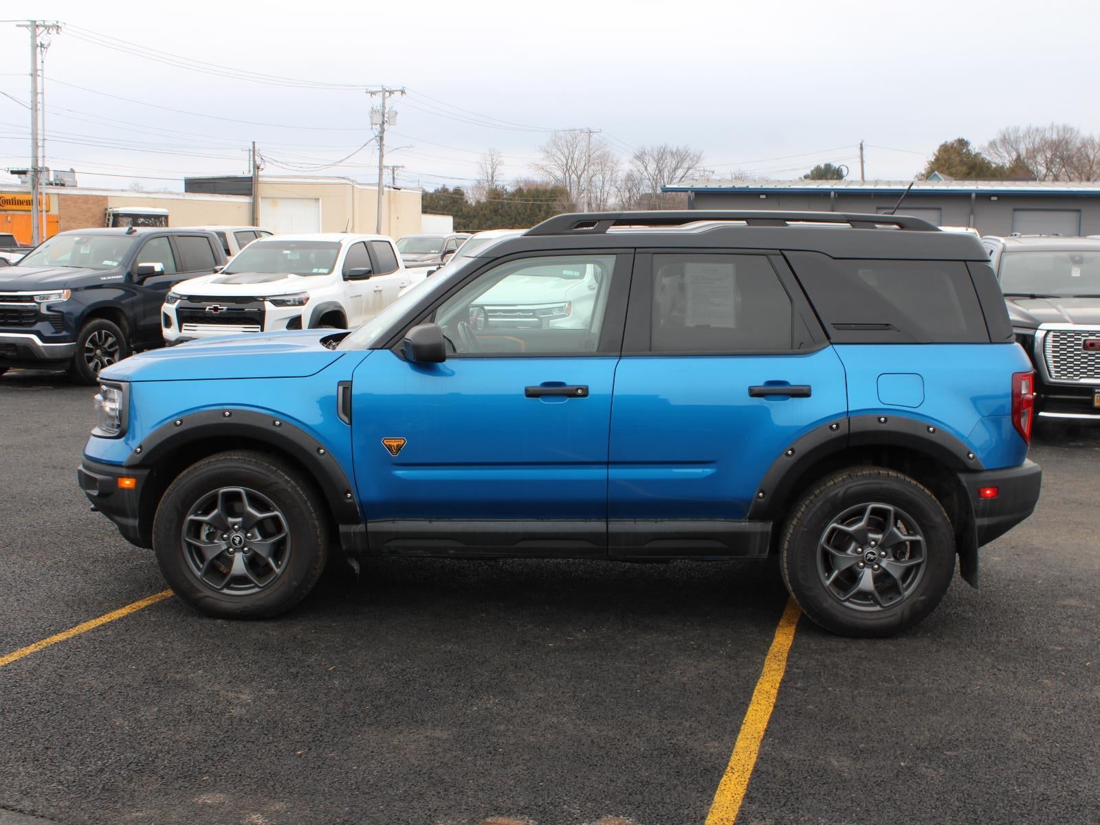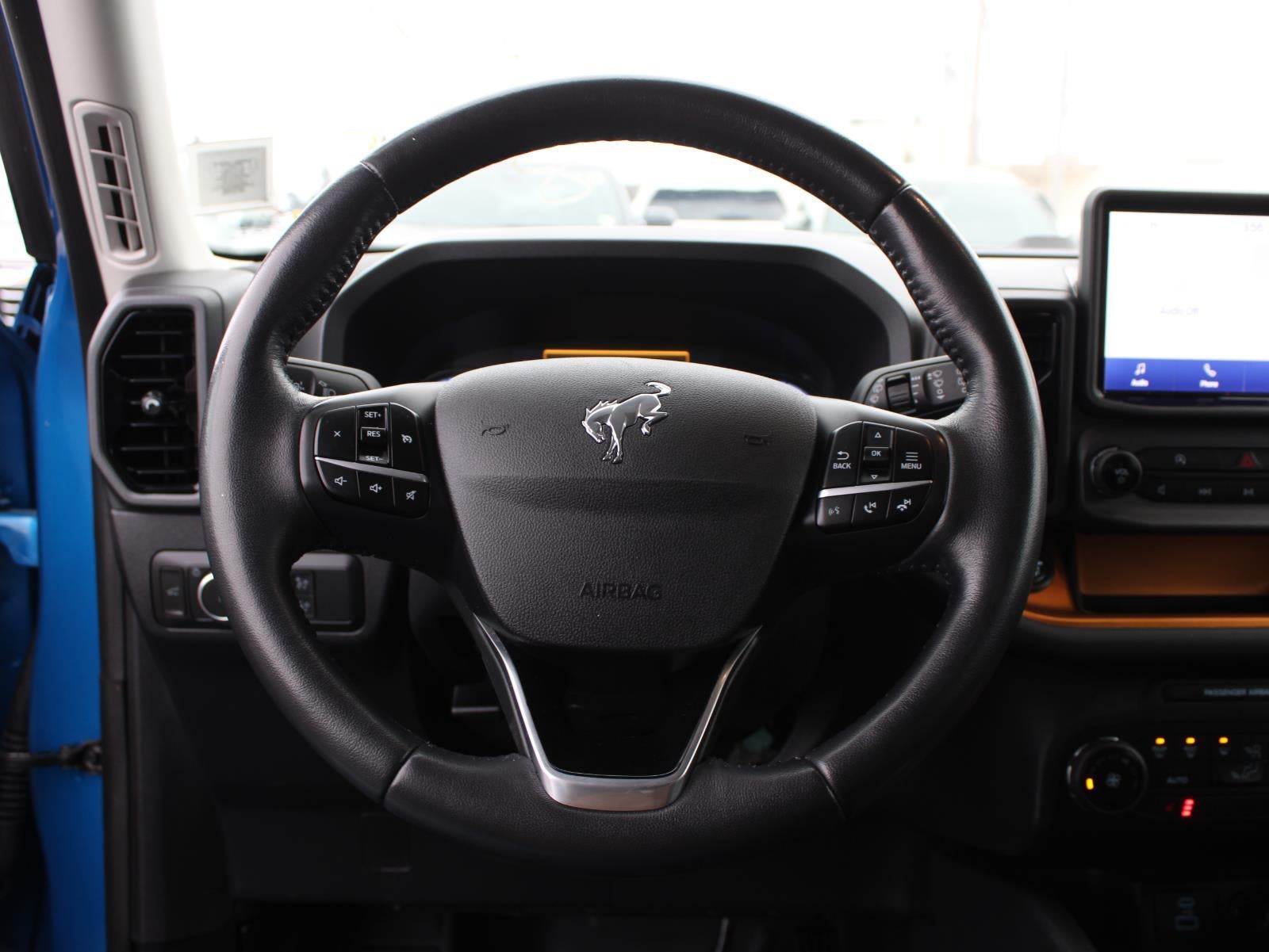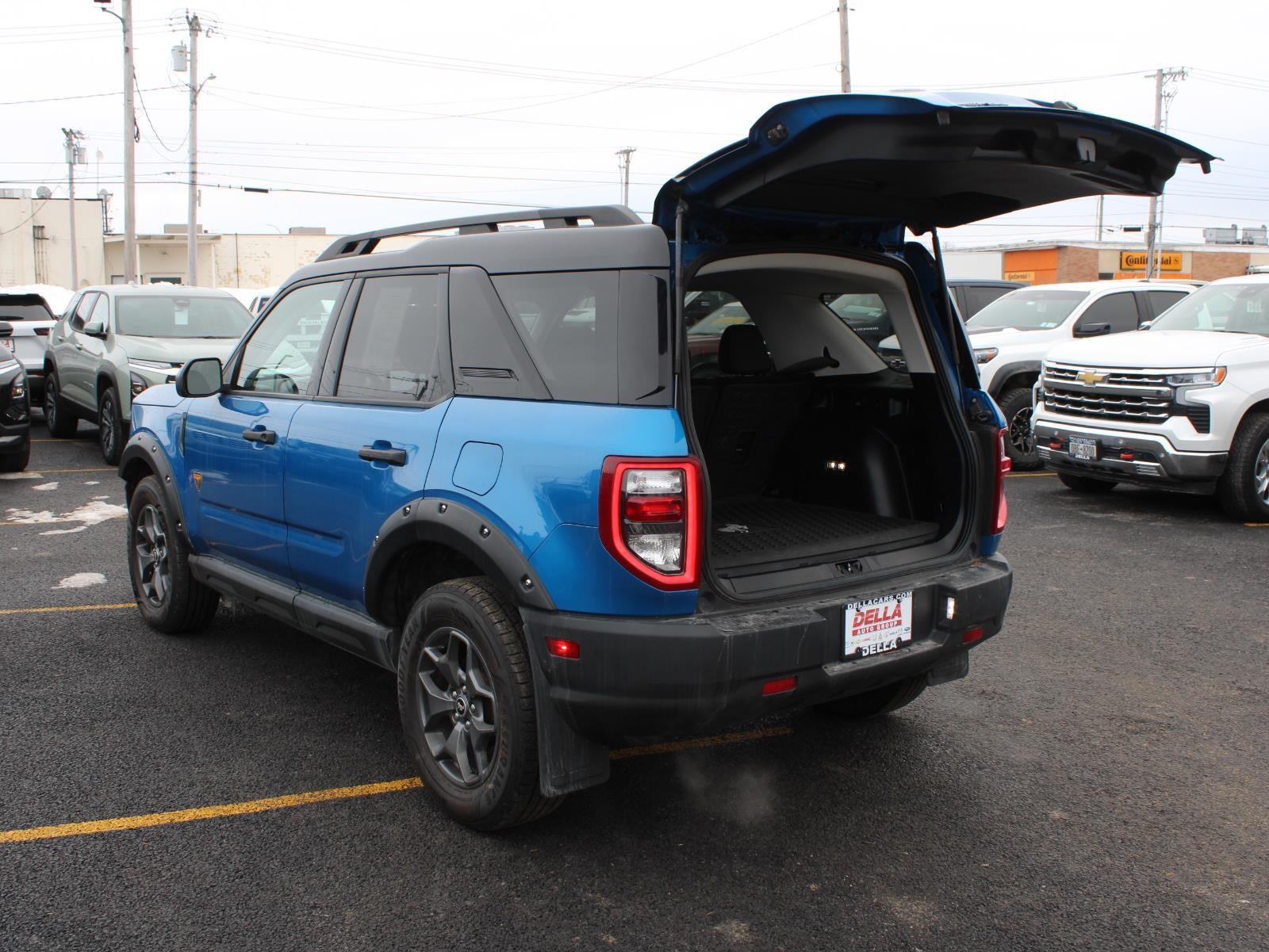 Thank you for considering our 2022 Ford Bronco Sport Badlands being offered in Velocity Blue Metallic with Ebony/Active Orange interior. Quick Highlights: No Accidents! One Owner! SHOP WITH CONFIDENCE - Warranty Coverage: FUEL ECONOMY RATING 21 City / 26 Highway KEY FEATURES INCLUDE Equipment Group 400A8-Speed SelectShift Automatic Transmission2.0L EcoBoost EngineUnique Cloth Heated Sport Contour Bucket Seats3.80 Axle Ratio4,630 lbs GVWRAM/FM Stereo225/65R17 All Terrain Tires17" Carbonized Gray-Painted Aluminum Wheel Safety and Security Forward collision mitigation - Forward thinking. You look away for just a second and suddenly the vehicle in front of you has stopped. That's when the forward collision mitigation system comes to life. When it senses an impending impact, it will activate a combination of features to help prevent or reduce the severity of an accident. Forward collision mitigation is always looking ahead. Pedestrian impact prevention - An extra step toward safety. Pedestrians don't always stop, look, and listen, but with Pedestrian Impact Prevention, your vehicle is equipped to better see them and avoid them. This system constantly monitors the road ahead to identify and track pedestrians. It projects that image to an interior display screen, AND should an impact become likely, Pedestrian impact prevention takes steps to avoid a collision. Rear camera with washer - Watching your back! The rear camera helps you see obstacles and hazards you otherwise couldn't by showing enhanced images of what is behind you. Even if there are sloppy conditions, the washer keeps the camera's view clean. Rear camera with washer is an extra set of eyes that's both convenient and safeTechnology and Telematics Smart device mirroring - Smartphone, meet smart car. You can control your device through your vehicle's infotainment system. Smart device mirroring brings together safety and convenience by making it easier to find what you're looking for while keeping your eyes on the road. Mobile hotspot - WiFi on the fly. Connect your devices to the Internet through your vehicles private mobile hotspot and take the internet wherever your journey takes you, without eating up your data allowance. Find the hotspot with mobile hotspot. Safety and Security Forward collision mitigation - Forward thinking. You look away for just a second and suddenly the vehicle in front of you has stopped. That's when the forward collision mitigation system comes to life. When it senses an impending impact, it will activate a combination of features to help prevent or reduce the severity of an accident. Forward collision mitigation is always looking ahead. Pedestrian impact prevention - An extra step toward safety. Pedestrians don't always stop, look, and listen, but with Pedestrian Impact Prevention, your vehicle is equipped to better see them and avoid them. This system constantly monitors the road ahead to identify and track pedestrians. It projects that image to an interior display screen, AND should an impact become likely, Pedestrian impact prevention takes steps to avoid a collision. Rear camera with washer - Watching your back! The rear camera helps you see obstacles and hazards you otherwise couldn't by showing enhanced images of what is behind you. Even if there are sloppy conditions, the washer keeps the camera's view clean. Rear camera with washer is an extra set of eyes that's both convenient and safeTechnology and Telematics Smart device mirroring - Smartphone, meet smart car. You can control your device through your vehicle's infotainment system. Smart device mirroring brings together safety and convenience by making it easier to find what you're looking for while keeping your eyes on the road. Mobile hotspot - WiFi on the fly. Connect your devices to the Internet through your vehicles private mobile hotspot and take the internet wherever your journey takes you, without eating up your data allowance. Find the hotspot with mobile hotspot. DELLA Chevrol